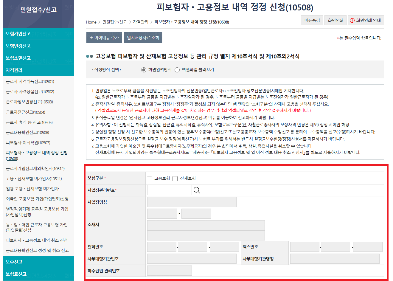 이것으로 고용보험 상세상실사유 수정신고를 마치겠습니다.