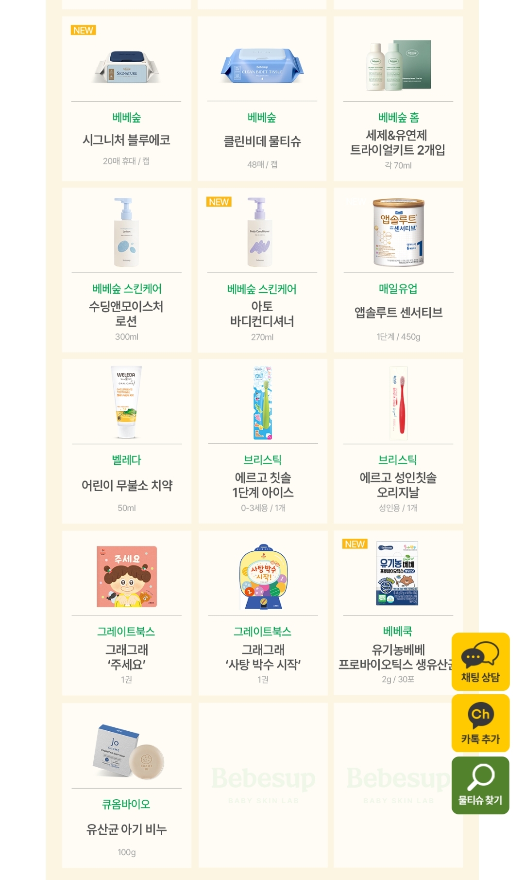 베베숲은 다양한 아기전용 물티슈와 안전한 성분으로 만들어진 아기세제,스킨케어로 유명한 브랜드입니다.