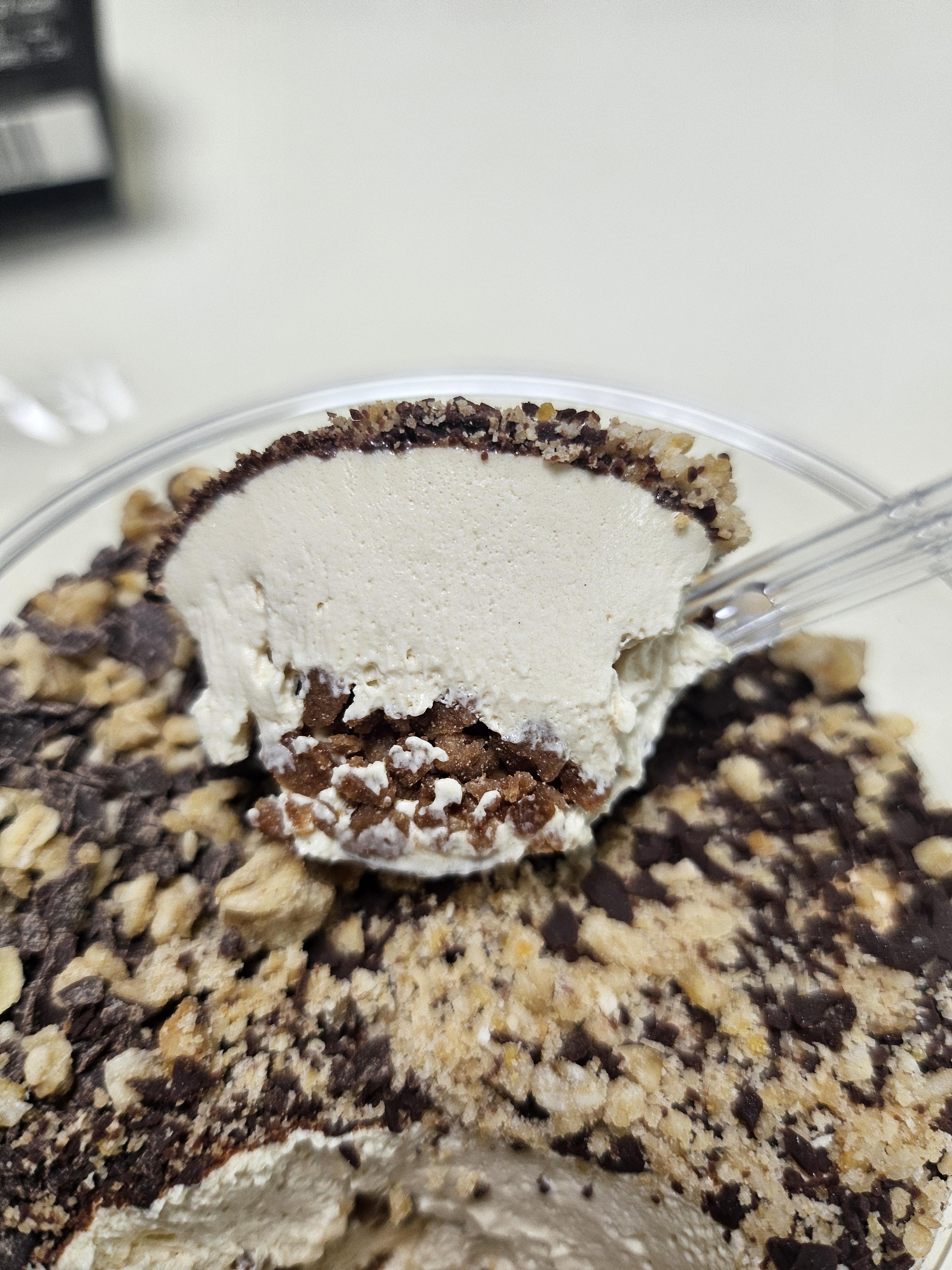 우선 중간중간에 있는 쿠키층인지.. 아님 맨위에있는 그래놀라인지는 모르겠지맘 너무 눅눅해서 식감이 너무 질기다는 느낌을 받았습니다.