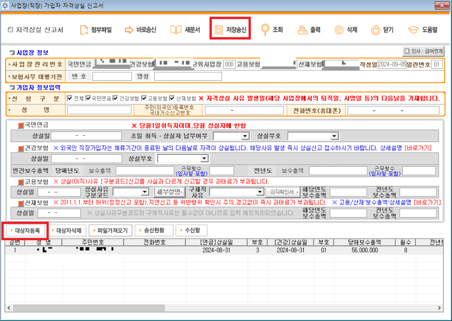 5. 대상자 등록 후 , 한번더 확인하여 송신합니다.