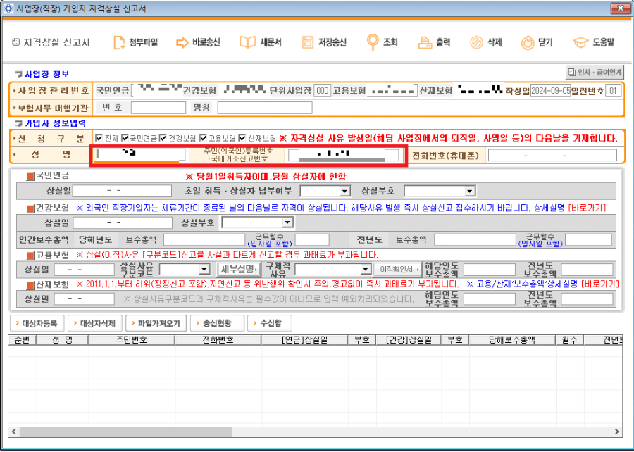 근로자가 퇴사하거나, 자격변동사유가 발생했을 때, 해당 직원이 4대보험 직장가입자격을 상실하였음을 신고하는 절차
