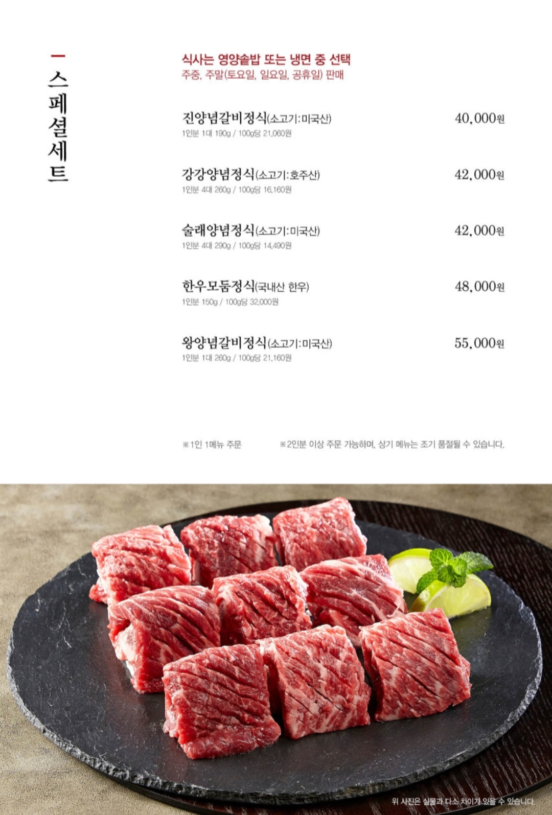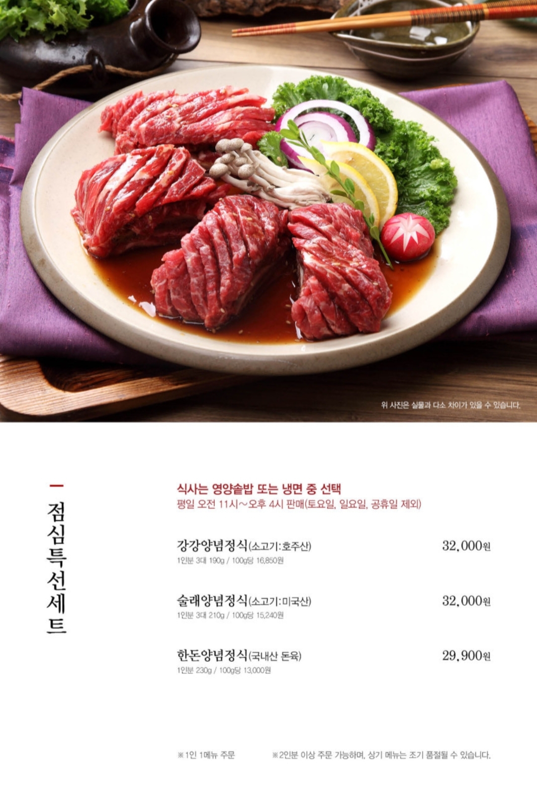 식사메뉴는 냉면과 솥밥 중에 고를 수 있고