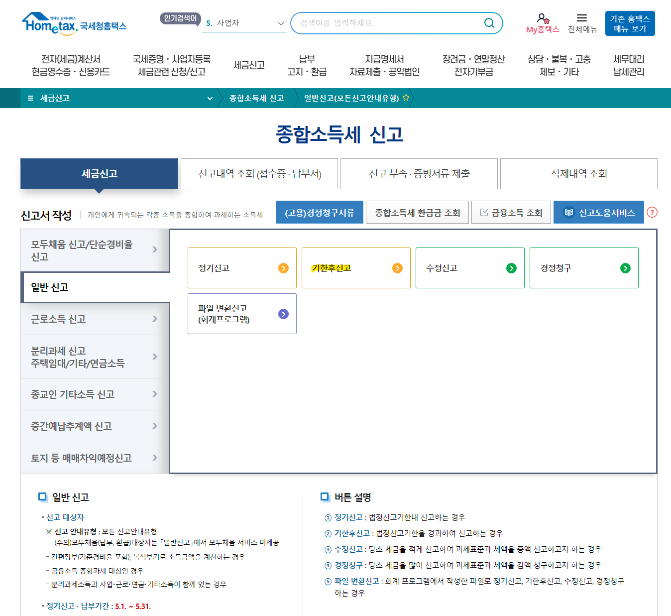 3. 일반신고 -> 기한후신고를 클릭합니다.