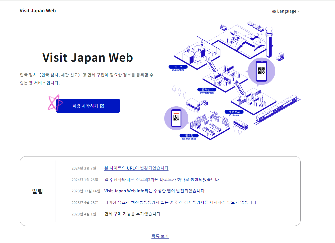비짓재팬(Visit Japan)은 일본 후생노동성에서 관리하는 온라인 입국 수속 서비스입니다.