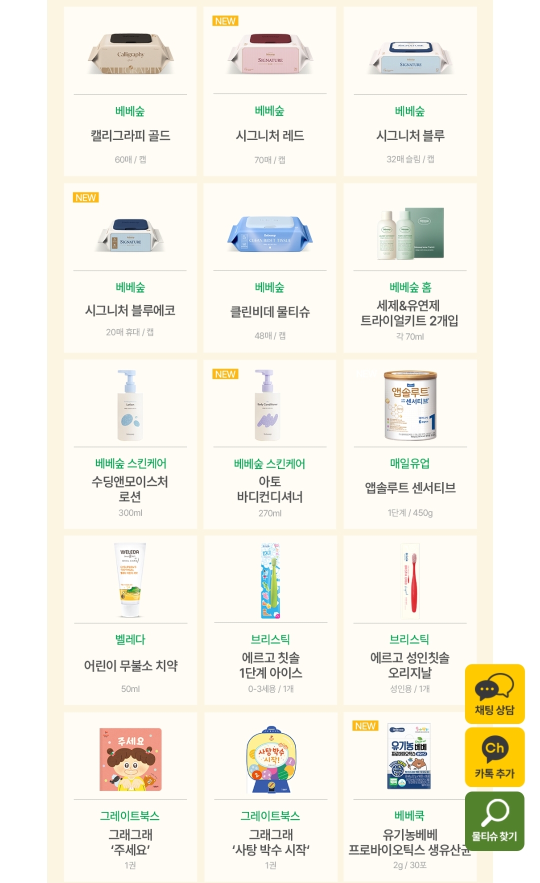 베베숲은 다양한 아기전용 물티슈와 안전한 성분으로 만들어진 아기세제,스킨케어로 유명한 브랜드입니다.