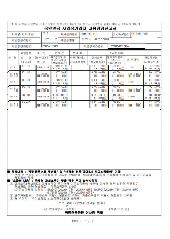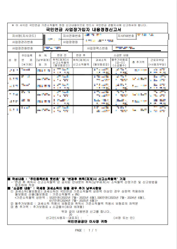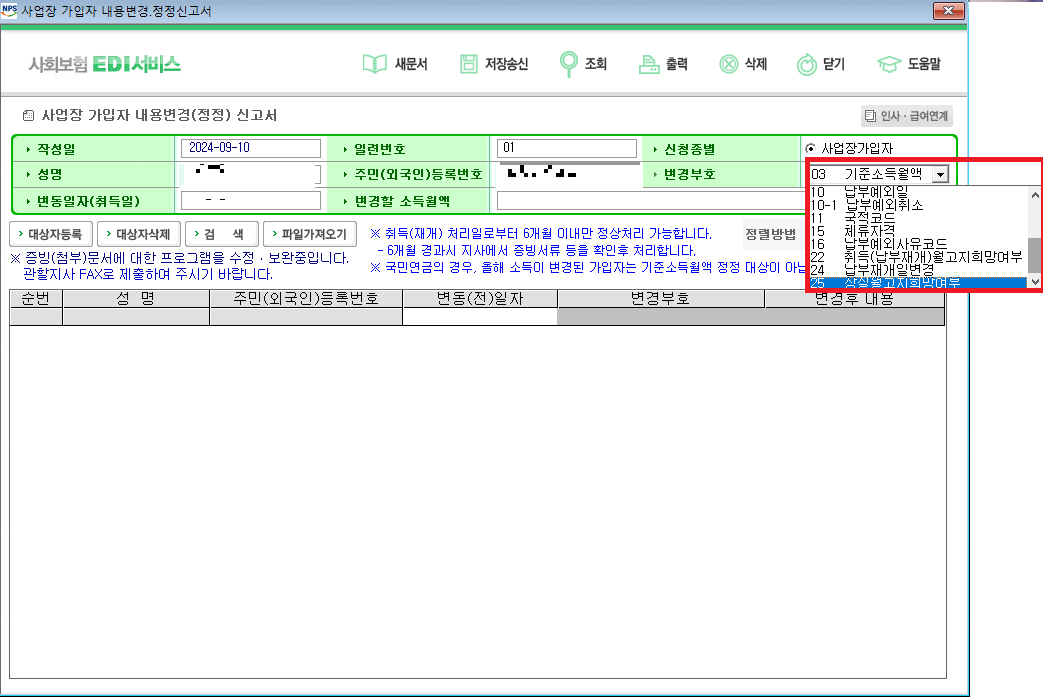 [4대보험]국민연금 취득(납부재개)시 기준소득월액 확인.정정신고 방법